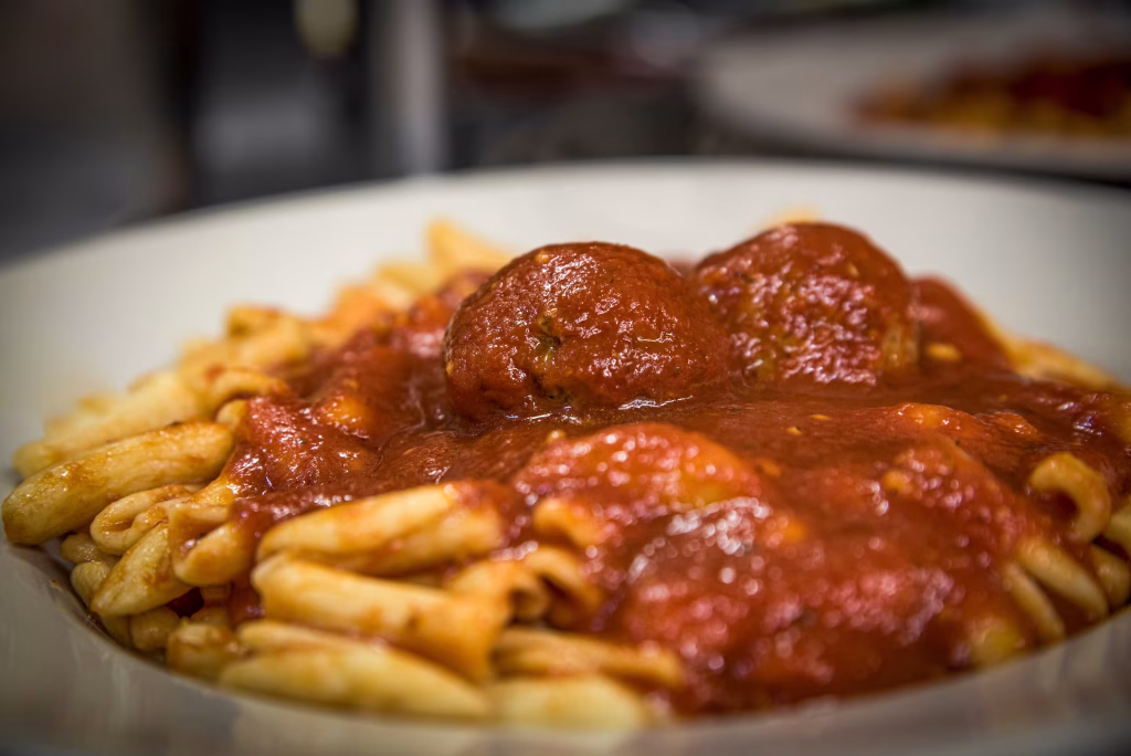 Imported Cavatelli pasta, smothered in our homestyle tomato sauce with Meatballs or Hot Sausage
